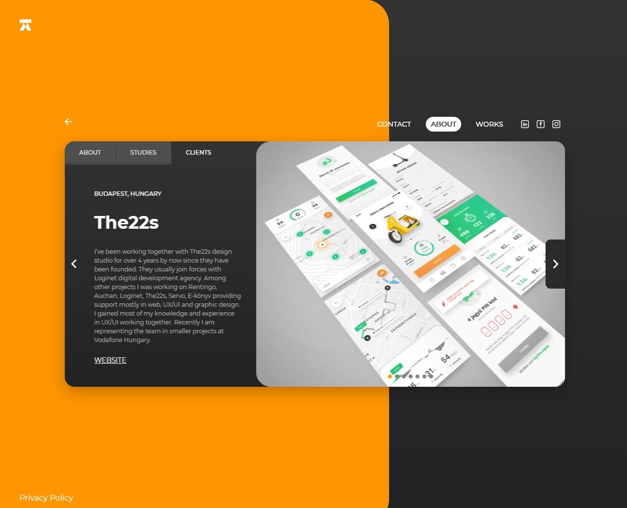 Since it's the portfolio page of a designer, it has a high quality look. Of course, to align with that, I recommended a high quality CMS system, too. Don't be fooled by the relatively simple structure, sliders always hold surprises for developers. But, it looks so good...